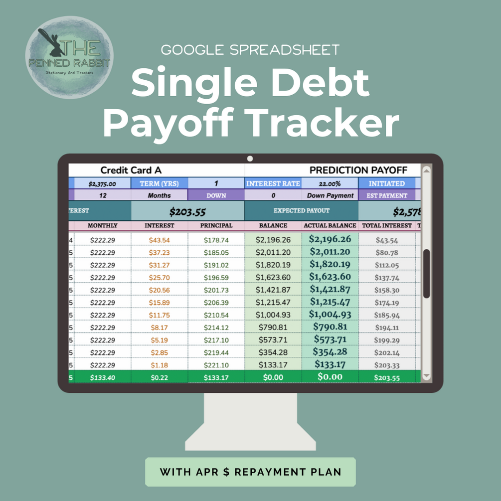 Single Debt Payoff Spreadsheet with APR | Google Sheets Template
